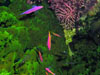 Le regard attiré par des tâches de couleur, nous découvrons souvent des scènes de vie marines dont les acteurs nous toisent, méfiants et parfois, mais rarement, indifférents aux intrus bruyants que nous sommes...